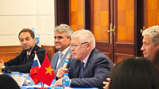 Руководитель фракции «Новые люди» Алексей Нечаев и председатель Комитета по безопасности и противодействию коррупции Василий Пискарев («Единая Россия») посетили Российский центр науки и культуры во Вьетнаме.