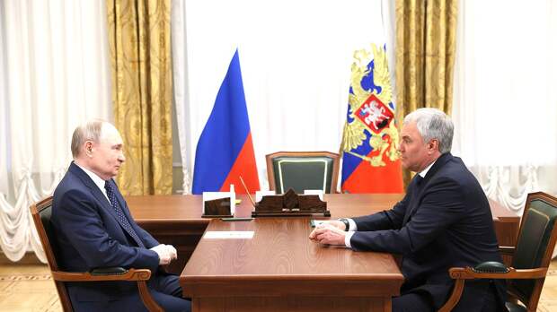 Президент РФ Владимир Путин провел в ходе поездки в Санкт-Петербург рабочую встречу с Председателем ГД Вячеславом Володиным.
